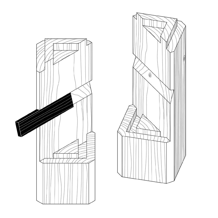 The studio started with the reconstruction of traditional Japanese wood joinery. Concepts were derived from the wood joints to inform the massing of the high rise. In this case, the connection piece used in the Hako Tsugi wood joint influenced the structure and program.