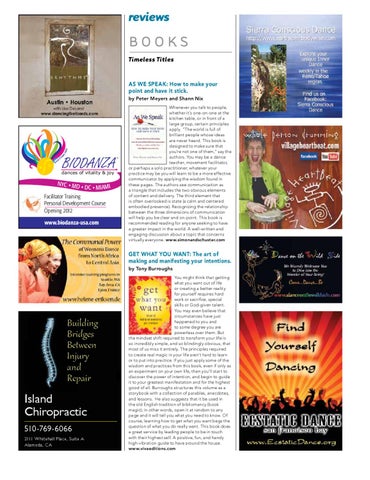 Whenever you talk to people, whether it’s one-on-one at the kitchen table, or in front of a large group, certain principles apply. “The world is full of brilliant people whose ideas are never heard. This book is designed to make sure that you’re not one of them,” say the authors. You may be a dance teacher, movement facilitator, or perhaps a solo practitioner; whatever your practice may be you will learn to be a more effective communicator by applying the wisdom found in these pages. The authors see communication as a triangle that includes the two obvious elements of content and delivery. The third element that is often overlooked is state (a calm and centered embodied presence). Recognizing the relationship between the three dimensions of communication will help you be clear and on-point. This book is recommended reading for anyone seeking to have a greater impact in the world. A well-written and engaging discussion about a topic that concerns virtually everyone. www.simonandschuster.com