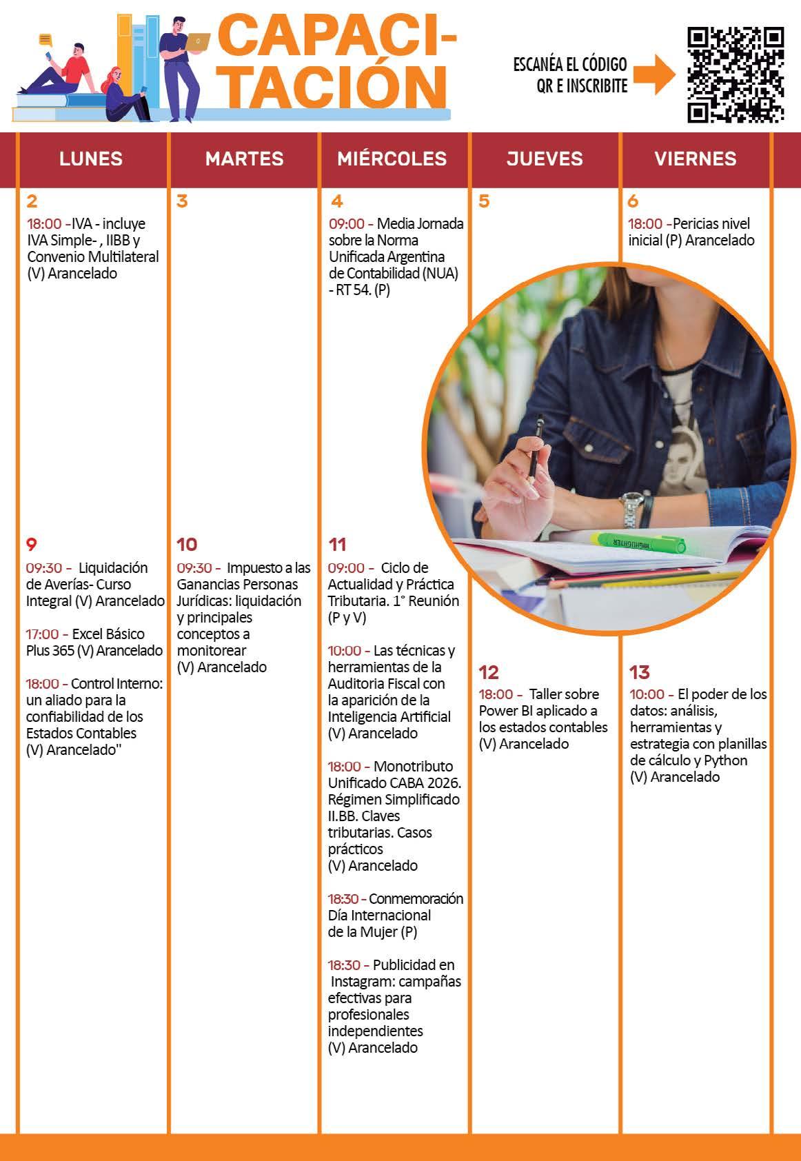 propuesta formativa clave para quienes desarrollan su actividad de manera autónoma. La actualización permanente en materia impositiva, contable y tecnológica es un pilar fundamental para fortalecer la práctica profesional, y se puede ver reflejada en la completa agenda del área de Capacitación que figura en estas páginas.