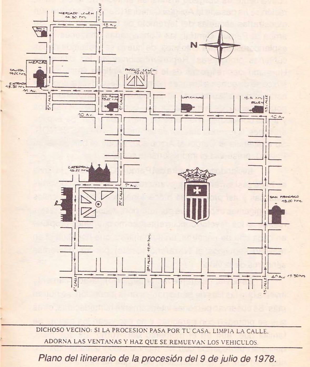 Nos presentamos aquel domingo en la tarde con el uniforme de gala. El colegio cargaría un turno en la procesión de Jesús de la Merced del 9 de julio de 1978. Cuando ofrecieron los turnos, fui de los primeros en inscribirse. El turno sería frente al Sagrario de Catedral, subiendo la 8ª calle, de la 8ª a la 7ª avenida. Igual que el turno que teníamos para el Domingo de Ramos desde el año anterior. Pues bien, recuerdo que estando adentro del colegio empezó a lloviznar.