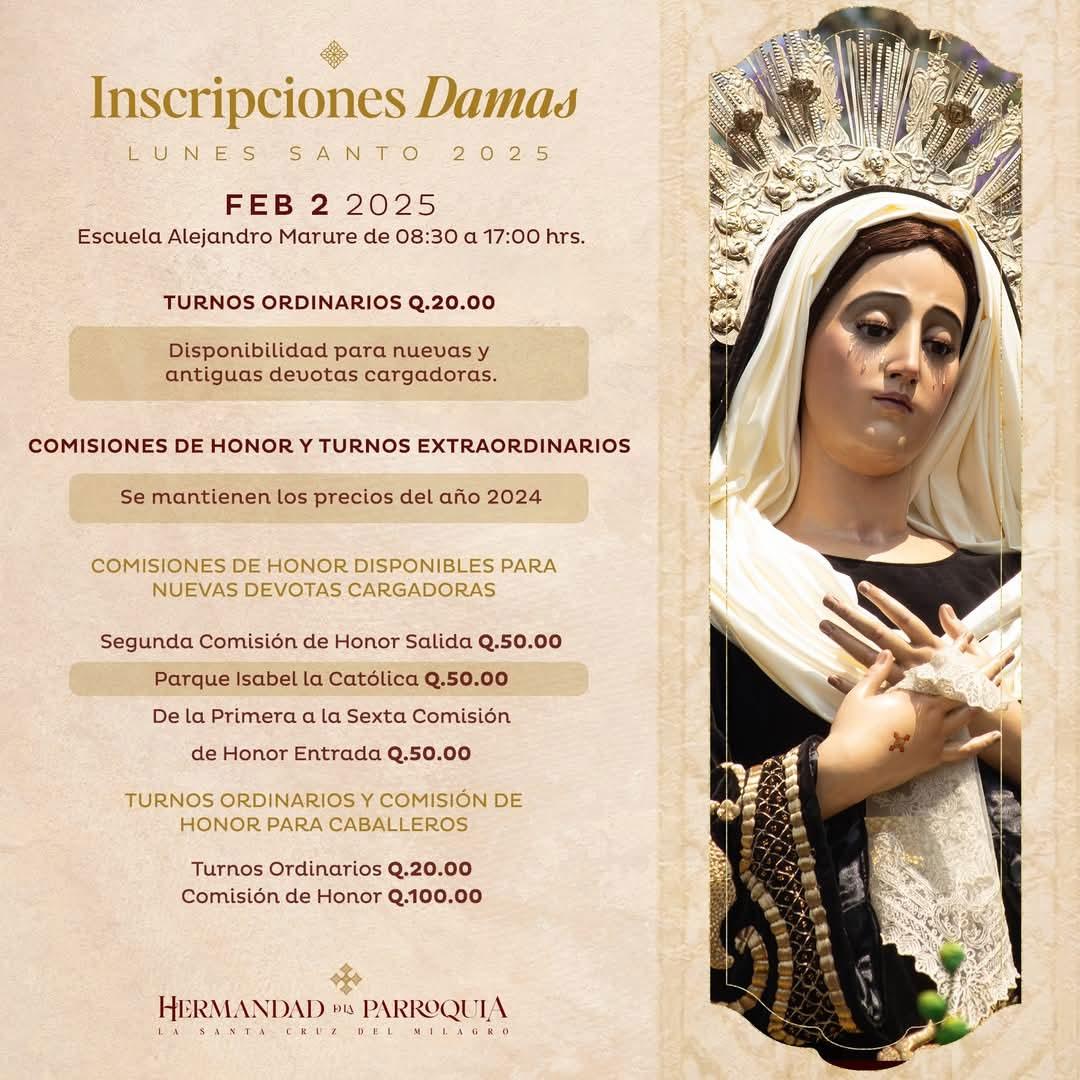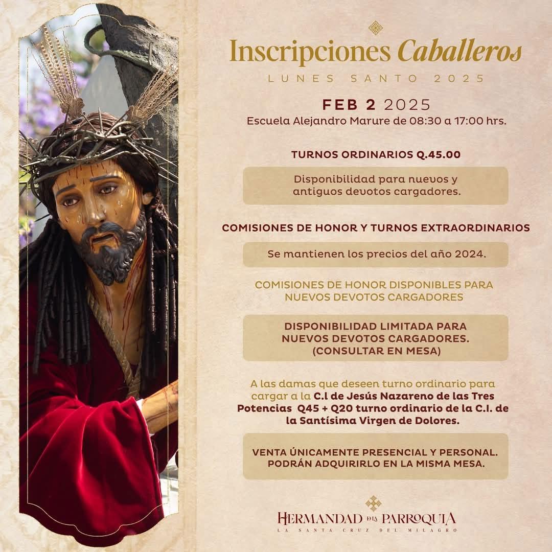 Cada vez estamos más cerca de la anhelada Cuaresma 2025, y con la emoción de la espera también llegan fechas importantes que debemos tener en cuenta. En este segmento, hemos recopilado información relevante desde redes sociales sobre actividades, inscripciones y eventos que podrían ser de su interés. Sin embargo, les recordamos siempre validar esta información directamente con las páginas oficiales de las hermandades y asociaciones correspondientes. ¡Que esta temporada sea una oportunidad para fortalecer nuestra fe y prepararnos con alegría!