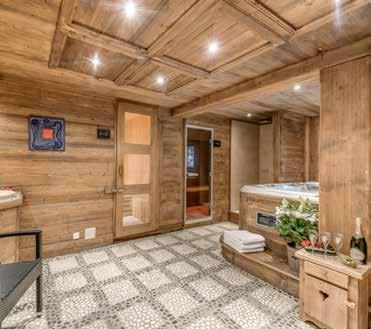 apartment’s open fire and perhaps pop open the complimentary bottle of Perrier-Jouët Champagne in the welcome basket or sample some other tipple from the private bar. Guests of Apartment Jossane have free access to Les Grands Chalets des Pistes’ spa and gym (16+ only).