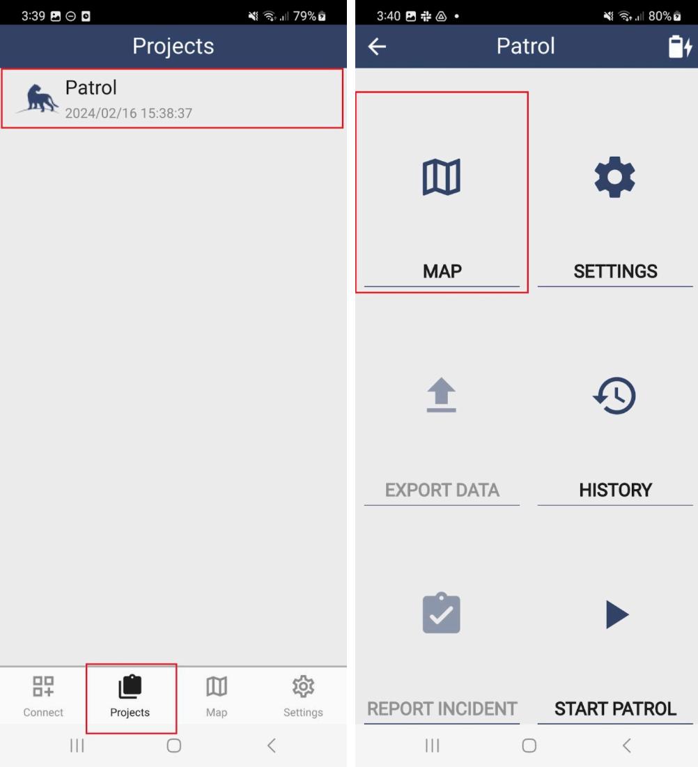 Step 2: Open the SMART Mobile application on the device, go to Projects, and select the Conservation Area data model project