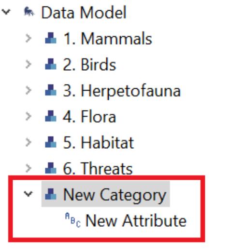 3 The new category will now appear under the data model tree Select it and click Add Attribute Select Create a new attribute