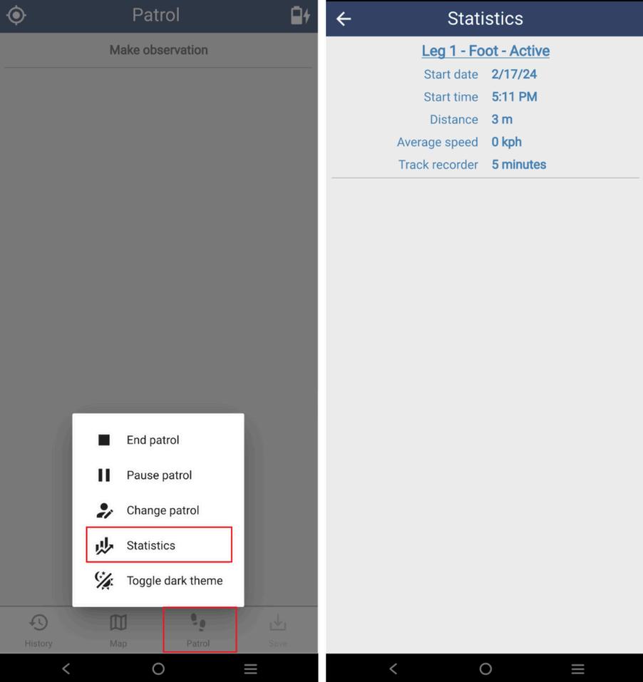 Step 6: To view patrol statistics, select Patrol and Statistics.