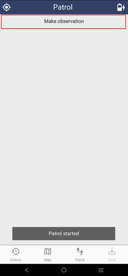 Step 4: The patrol is ready to take observations. Tap Make Observation. Choose from the different categories or observation options to start the data collection.