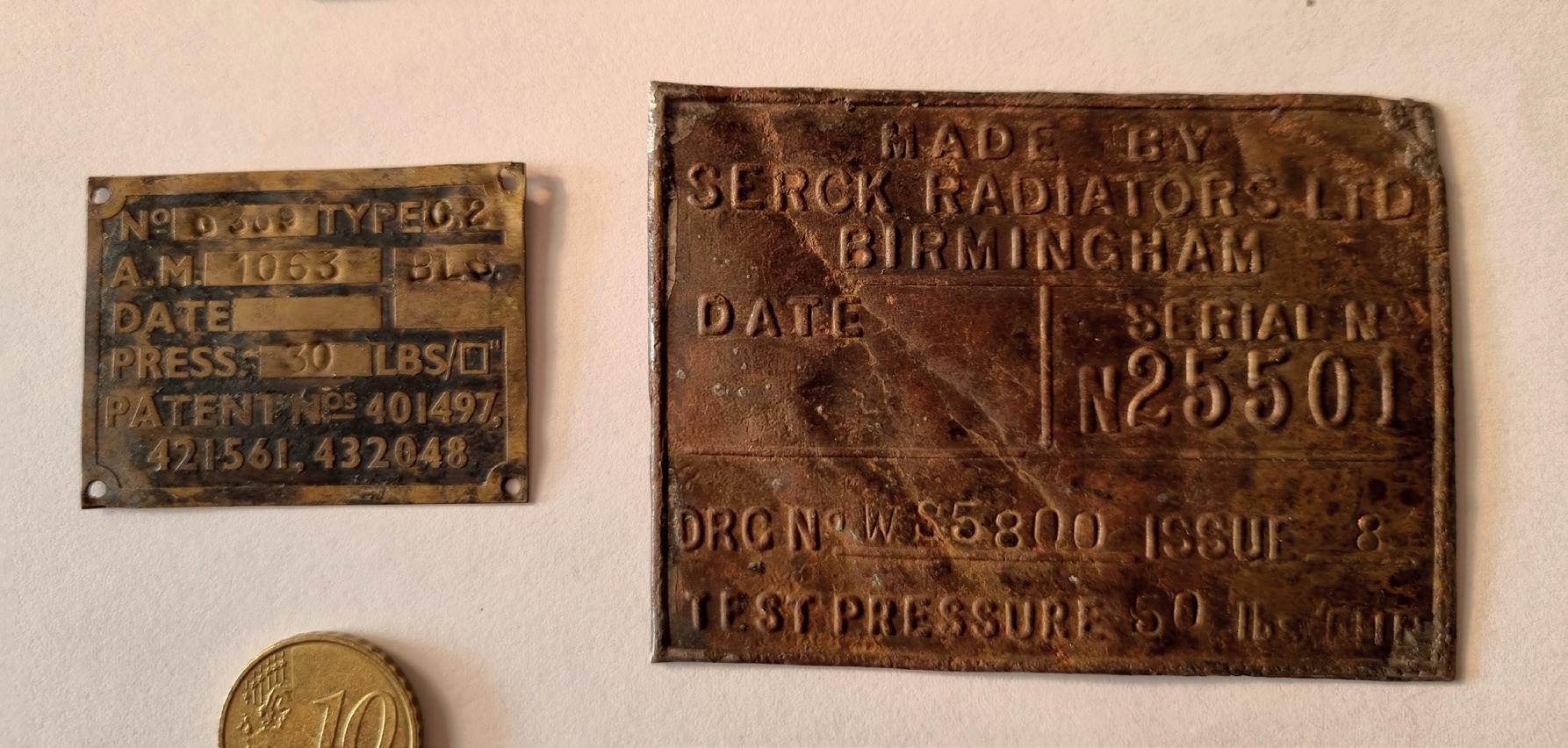 We found some pieces of metal from the plane on the crash site and on three of them were little identification plates, two from the engines (radiator) and one small plate (front starboard).