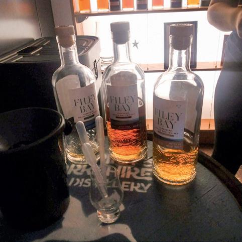 rough Filey with its unusual covered train shed, to Hunmanby, you take a le on leaving the station uphill on the Bridlington Road, passing a tyre recycling facility (I did not know tyres could smell as much!) to the industrial estate where the distilliery is located. Tours run daily at 1100, 1300 and 1500, with no 1500 tour on Sunday. Book at spiritofyorkshire.com. e owning family are farmers and brewers, so the process is kept in house from eld to bottle, since they even bottle the spirit on site. Made with 100% homegrown barley and water from the chalk beneath their farm, the “Filey Bay” single malt whisky isn’t just