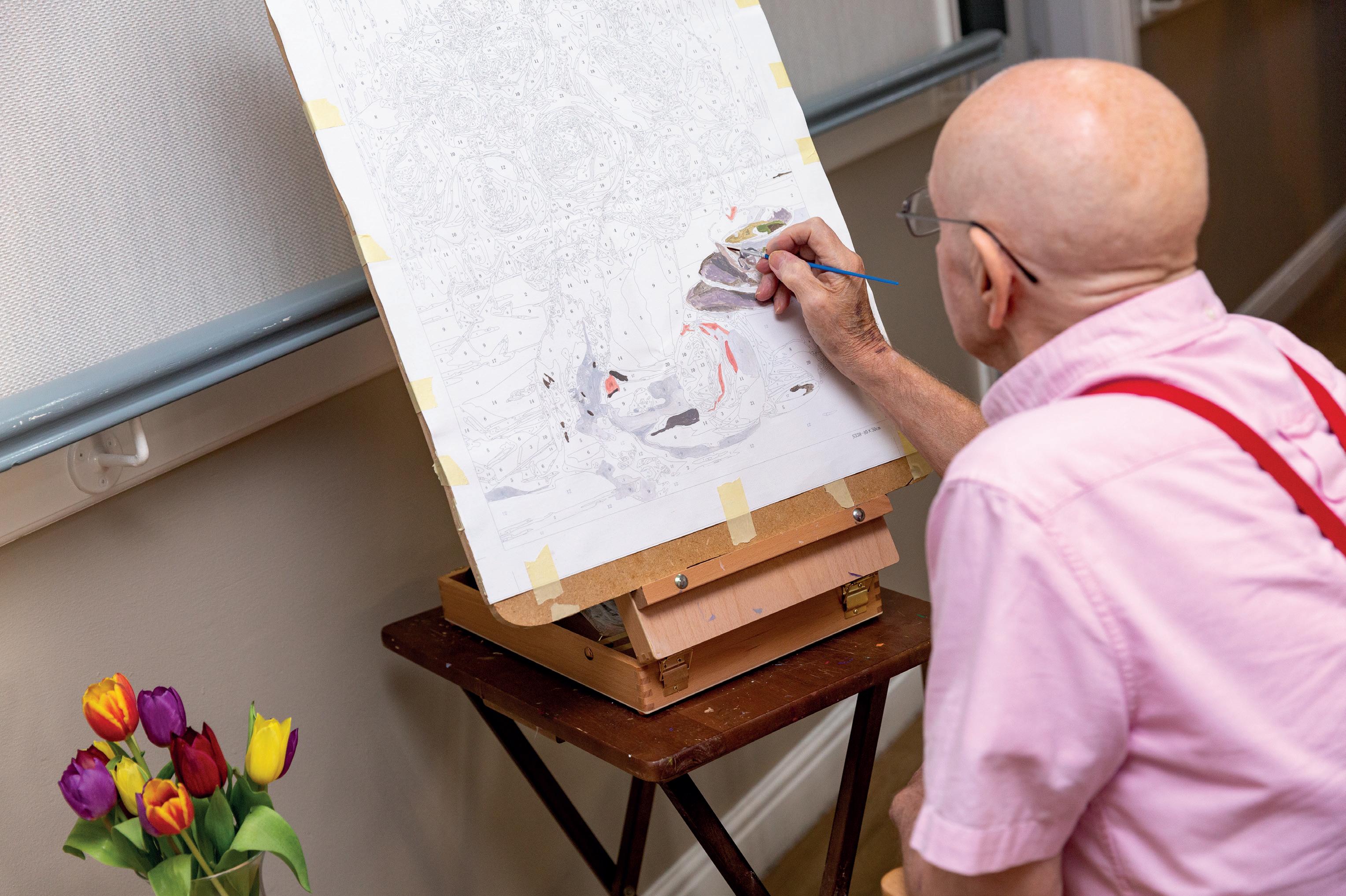 Denise works in mixed media using, Acrylics, Oils and Coloured pencils and as can be seen in the photos, loves to work on several paintings at a time, to keep her fresh and save time waiting for paints to dry. She however not only paints on canvas and paper but loves working on large scale murals, which can be seen locally at Lanchester Garden Centre and nursery schools in Sunderland and Durham Hospitals.
