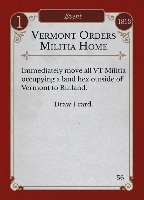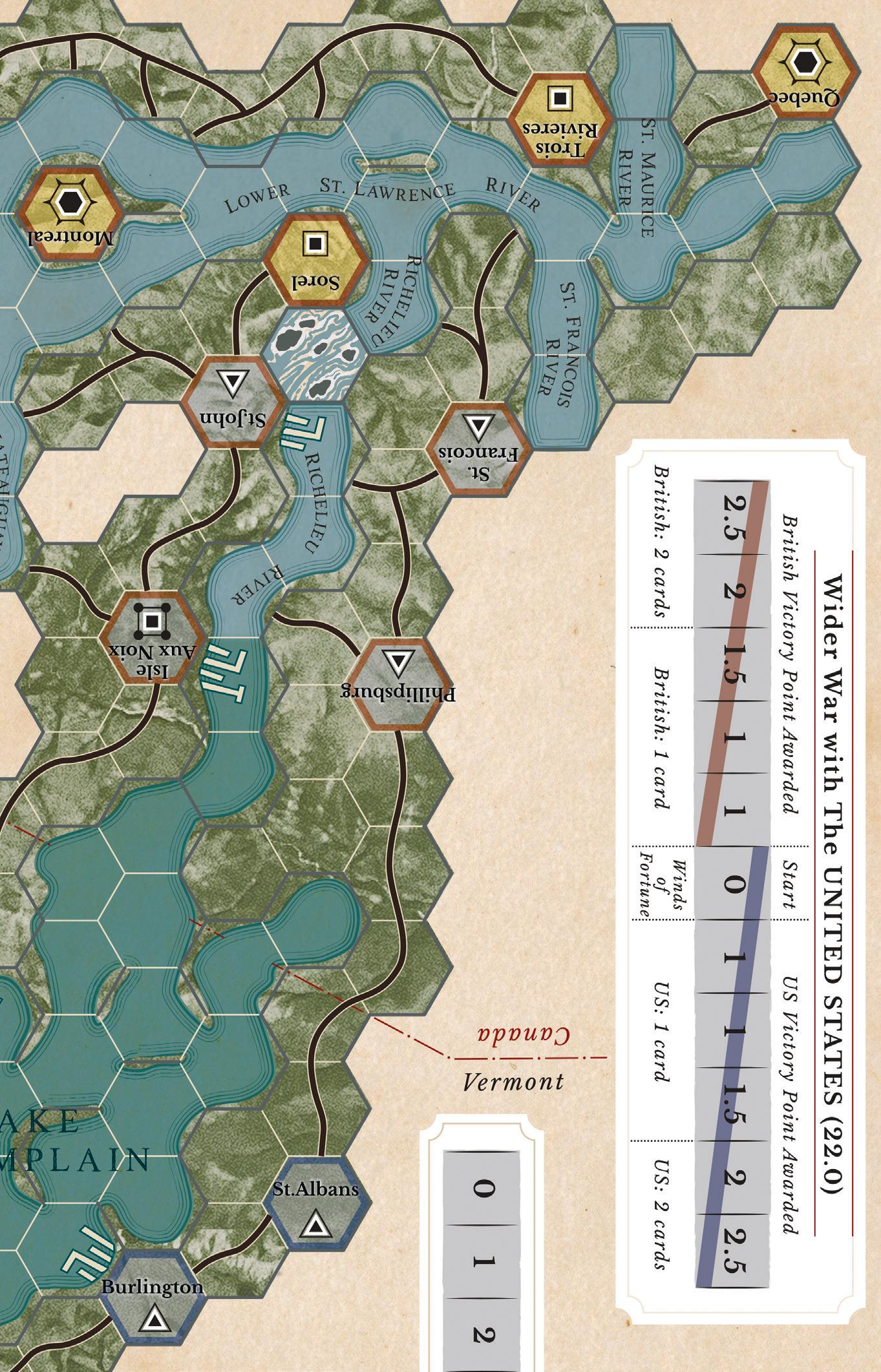The three hexes marked “The Road to Sackett’s Harbor” are considered non-hexes until US Event Card #26: The Road to Sackett’s Harbor has been played for the Special Effect during the Event Segment.
