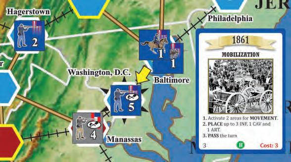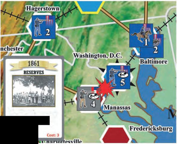 Alternately, you may use Resource Points to place replacements of a given side directly onto the appropriate capital city, even if no friendly units are there, as long as it is not enemy occupied. The exceptions to this are Confederate resources may be spent in Montgomery if Richmond has been taken, and Union resources may be spent directly in New York City if Washington has been taken.