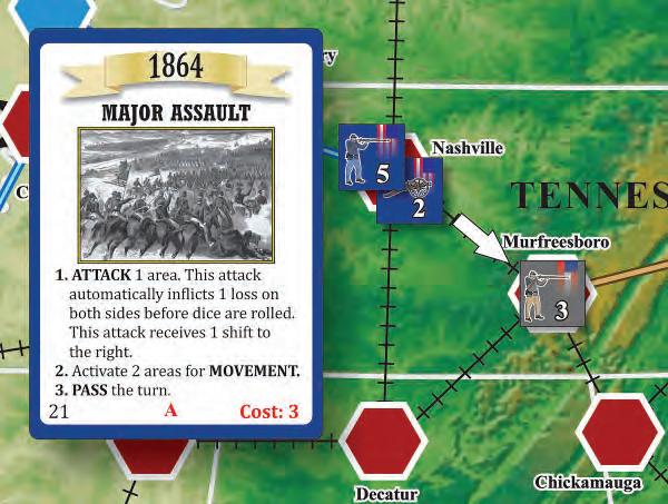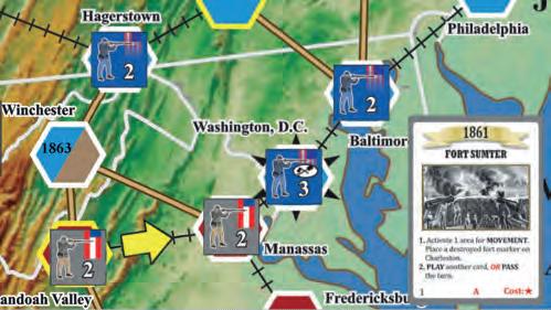 3-9. The first time any Major Reinforcement Area (for either side) is captured, it causes a shift on the political track to the appropriate direction. (Richmond only counts once if captured, not twice.)