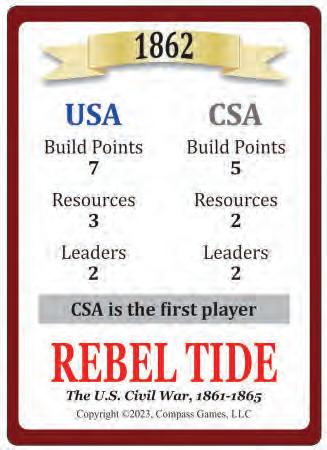 Place any new leaders if available from the Year Card. The First player for the year draws and places any new leaders first, then the second player. In 1861 the First Player is the CSA as listed on the year card.