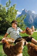 Der Tschötscherhof ist ein Postkartenmotiv, ein 100-jähriger Rebstock und das Fresko der Muttergottes mit dem Kind heißen den Besucher willkommen. Ein Bild ländlichen Friedens, neben dem Dorfteich und der Kirche von St. Oswald, einem kleinen Weiler der Gemeinde Kastelruth.