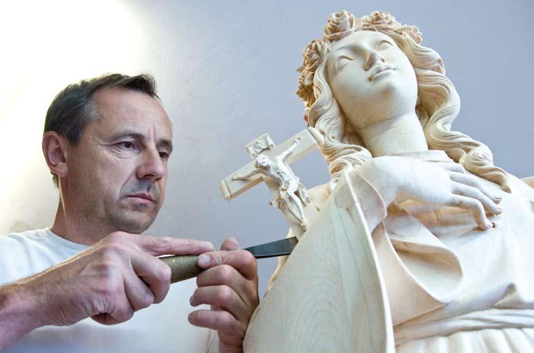 Feinschliff: Der Bildhauer bringt seine Madonna zur Vollendung