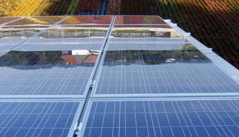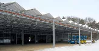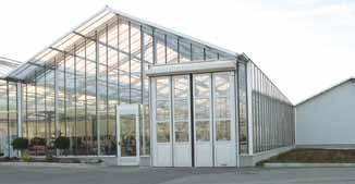 Betrieb heranziehen können. Allein für diese Lösung wurden 9 neue Aluprofile entwickelt. Als zweites technisches Highlight gilt das eingebaute Glas, mit welchem die transparente Dachfläche eingedeckt wurde. Die besondere Eigenschaft dieses Glases ist die erhöhte UV-Durchlässigkeit und ein Diffusionsgrad (haze - factor) von über 60% Das gestreute Licht fördert das gesunde Wachstum von Jungpflanzen, weil alle Teile der Pflanze gleichmäßig Licht erhalten. Durch den hohen Anteil an PAR Strahlung ist eine hervorragende Jungpflanzenqualität ge-