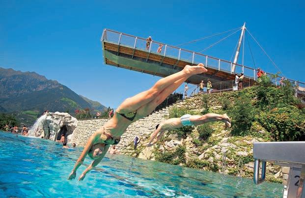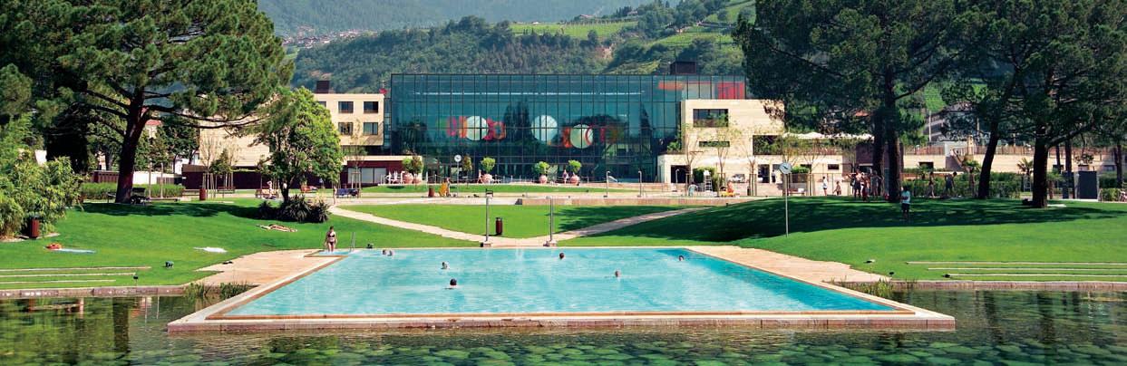 • Die Therme Meran: Ein ganz neues Wasser-Erlebnis: 12 Outdoor-Pools und 13 Indoor-Pools mit Fitnessbecken, Sprudelbecken, Whirlpools und Quellbad. Dazu ein wunderschöner mediterraner Park.