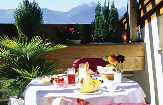 • Frühstücksbuffet mit täglich hausgemachtem Marmorkuchen und Hefezopf, 8 Spezial-Brotsorten, 6 Müslisorten, Rührei und hartgekochten Eiern, hochwertigen Käse-und Wurstsorten, dazu Südtiroler Speck und naturbehandelter Schinken.