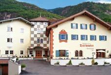 Newly extended! 110 beds, rooms with safe, sat. TV, phone, balcony. 2 lifts, bus parking, heated outdoor pool and large garden. Törggelen in rustic cellar, located in village centre. Packages for groups. Please ask.