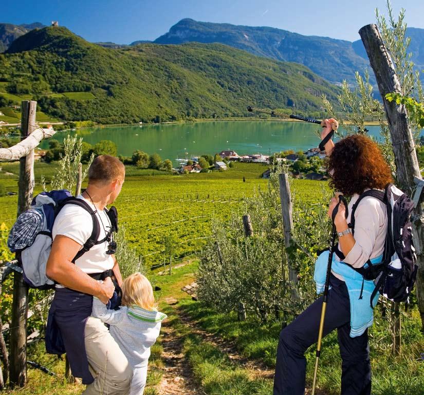 Immerso nei vignetti con splendida vista sulla Valle dell’Adige e sul Lago di Caldaro. Base ideale per gite a piedi ed in bicicletta.