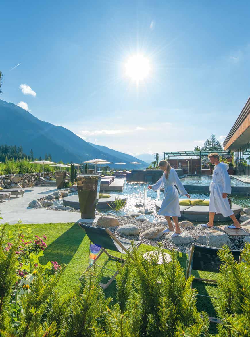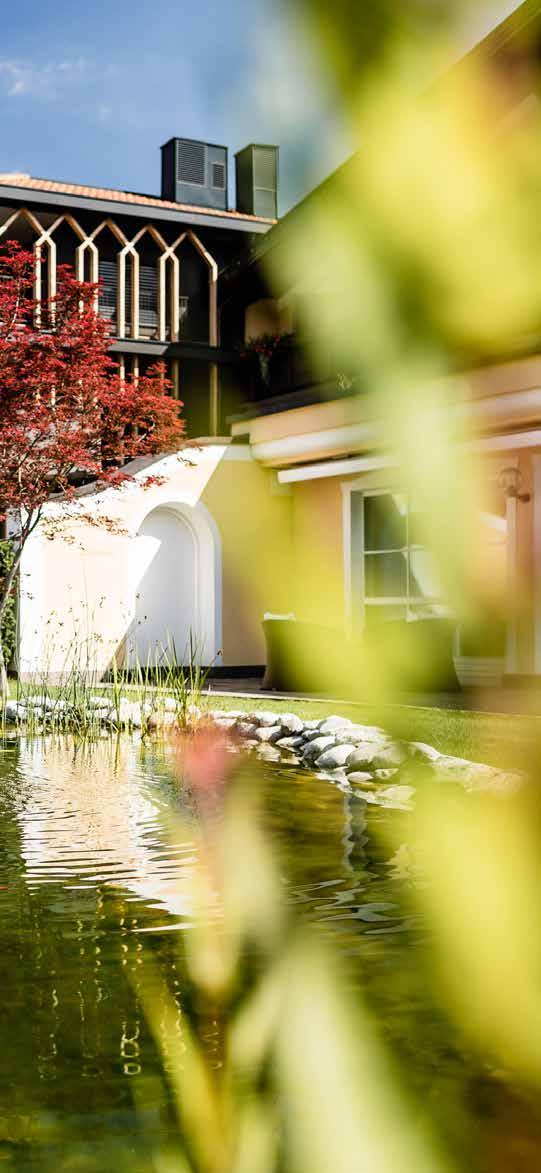 Der 6.000 qm große Garten und der weitläufige Wellnessbereich sorgen für Glücksmomente, die beflügeln. Hier verschmelzen die verlockende Anmut Italiens mit der bodenständigen Tradition Südtirols. Hier erleben Sie eine Symbiose aus mediterranem Flair und heimischer Geborgenheit. Dies macht sich auch auf den Tellern bemerkbar: Unsere Low-Carb Küche spiegelt die Natur der Region wider und bringt Ihr Herz zum Strahlen.