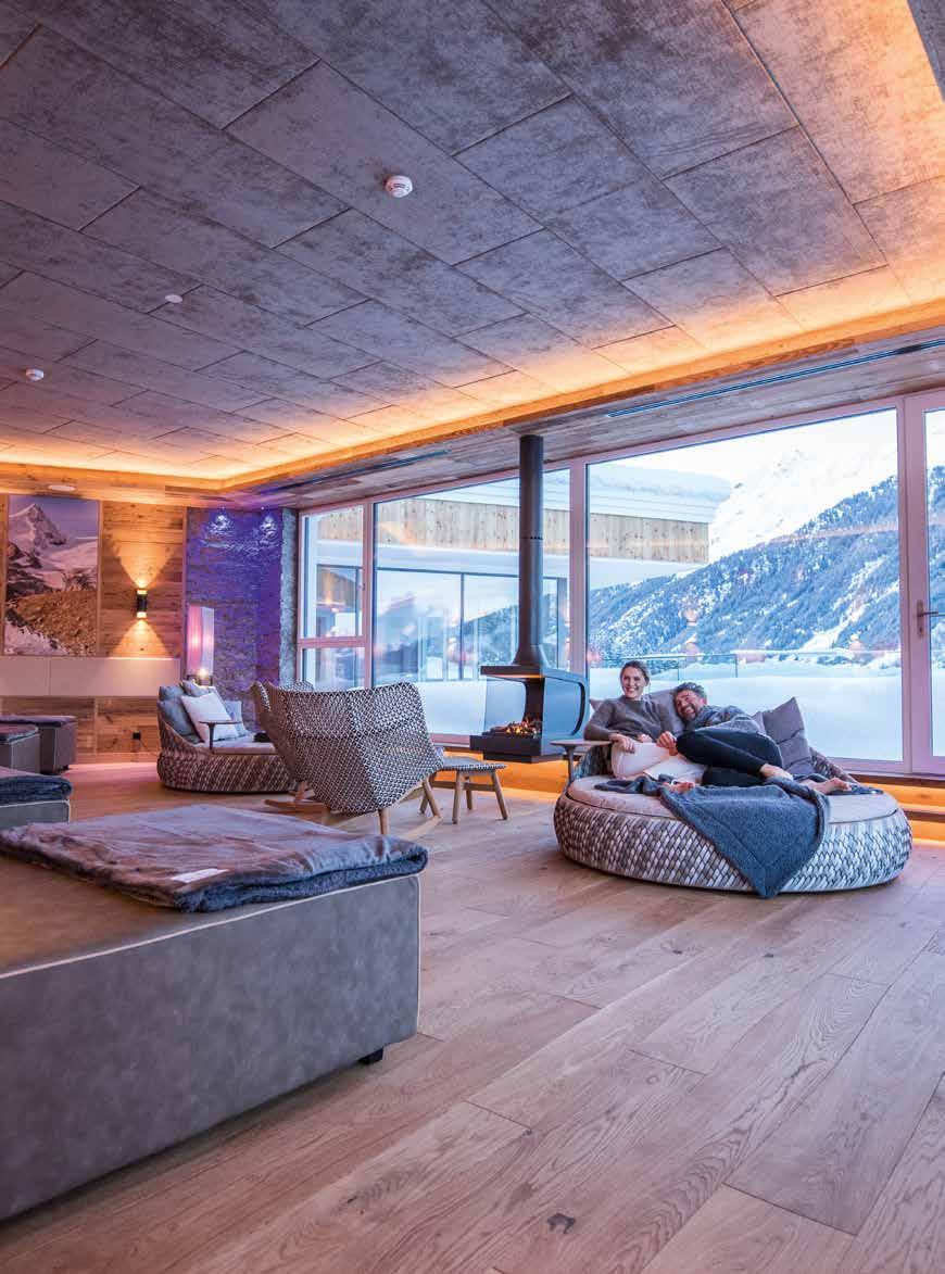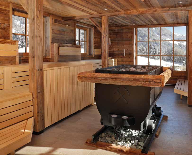 In der Stollensauna mit 80 bis 100° C wird dem Körper mit besonderem Stollencharakter so richtig eingeheizt, um sich von Altlasten zu befreien, den Kreislauf in Schwung zu bringen und in gleichen Maßen das atemberaubende Ridnauner-Bergpanorama zu inhalieren. Schöner kann Schwitzen im Wellnessurlaub nicht sein.