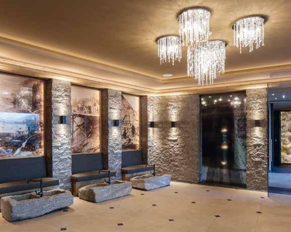 … können gleichzeitig historische Steine aus dem Bodenaushub und Natursteine aus einem Umkreis von 15 km, welche von traditionellen Südtiroler Handwerkskünstlern meisterhaft in Szene gesetzt wurden, bestaunen. Was für ein Saunaerlebnis!