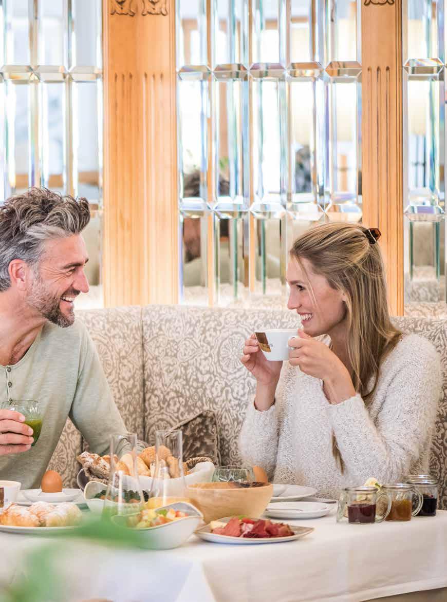 Leicht und locker beginnt der Morgen, gestärkt am frischen und leckeren Frühstücksbuffet. Zur kurzen Einkehr mittags bedienen wir Sie gerne in unserem Restaurant. Abwechslungsreich und vielfältig ist unsere Speisekarte mit erlesenen Gerichten der Südtiroler und italienischen Küche. Entdecken Sie am besten selbst unsere Vielfalt an „kulinarischen Experimenten“.