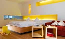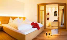 Schlafzimmer mit 39 m2 in Lärche natur, Lärchenboden, Schiebetürschrank, Garderobe, Kofferbock, Schreibtisch, Minibar, Zimmersafe, Telefon, Internetanschluss, Schminkspiegel, ausziehbares Schlafsofa (160 x 200 cm), Badezimmer mit 2 Waschtischen, geräumige Dusche mit Raindance Handbrause, getrenntes Tages-WC mit Bidet, Plasma TV-Gerät, großer Balkon zur Südseite (9 m²).