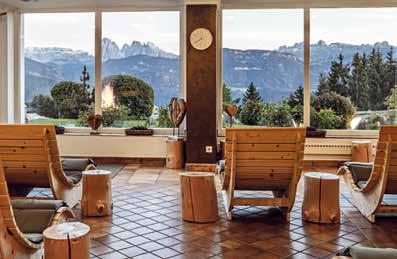 Wir bieten Ihnen 4 verschiedene Saunen sowie einen Ruheraum mit Dolomitenpanorama
