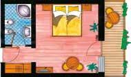 camera tranquilla con balcone, esposta a sud, con pavimento effetto legno