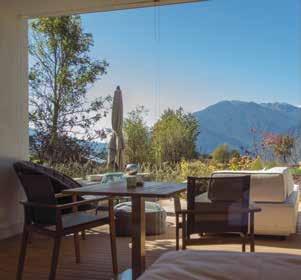 Luxuriöse Suite für 2 Personen, im 1. Stock mit traumhaften Panoramablick, große Südterrasse mit Komfortliegen, Kochnische mit Nespresso-Kaffeemaschine, Infrarotliege, Safe, Telefon, Sat-TV, Haarföhn, Bad/WC/Dusche und Bidet, Tiefgarage mit E-Charger.