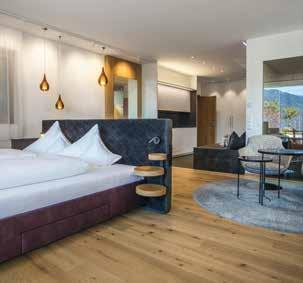 Diese Traumsuite im alpinen Design ist mit hochwertigem Fichten- und Zirbelholz ausgestattet. Ein Boxspringbett schenkt mehr Schlafkomfort und ein großzügiger Balkon gibt den Blick Richtung Sarntaler Alpen und Schloss Rodeneck frei. Das Badezimmer mit getrenntem WC verfügt über eine Badewanne.