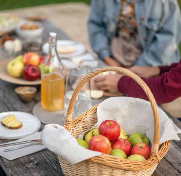• In tarda estate e in autunno la raccolta delle mele e la vendemmia sono in pieno fermento e ci offrono una ricca varietà di prodotti freschi e regionali.