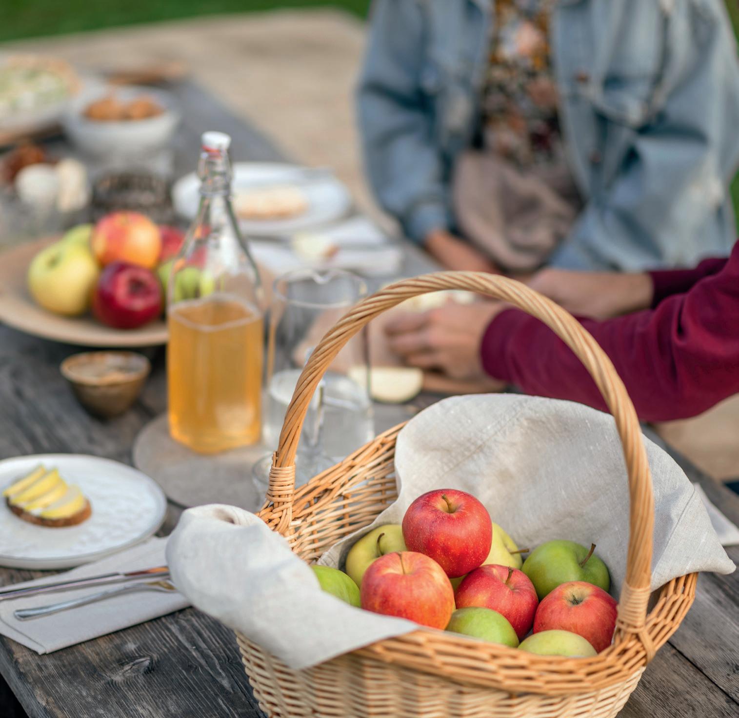 • Im Spätsommer und Herbst ist die Apfel- und Traubenernte in vollem Gange und bietet eine bunte Vielfalt an frischen und regionalen Produkten.