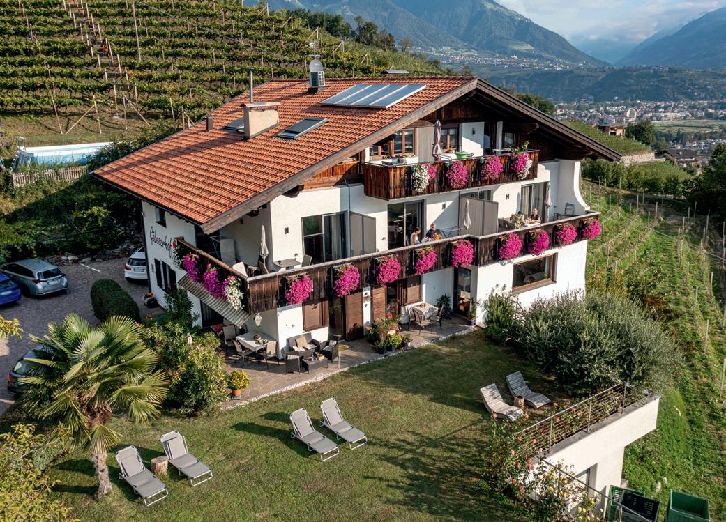 In the winemaking village of Marling there are plenty of unique things to discover; alongside the wonderful panoramic location with views of Merano and environs as well as the imposing mountain summits, the centre of the village offers a cosy, inviting atmosphere. The unique landscape is shaped by the surrounding vineyards and orchards. High above them is Marlinger Berg mountain and the Vigiljoch pass, which are wonderful places for hiking, biking and relaxing.