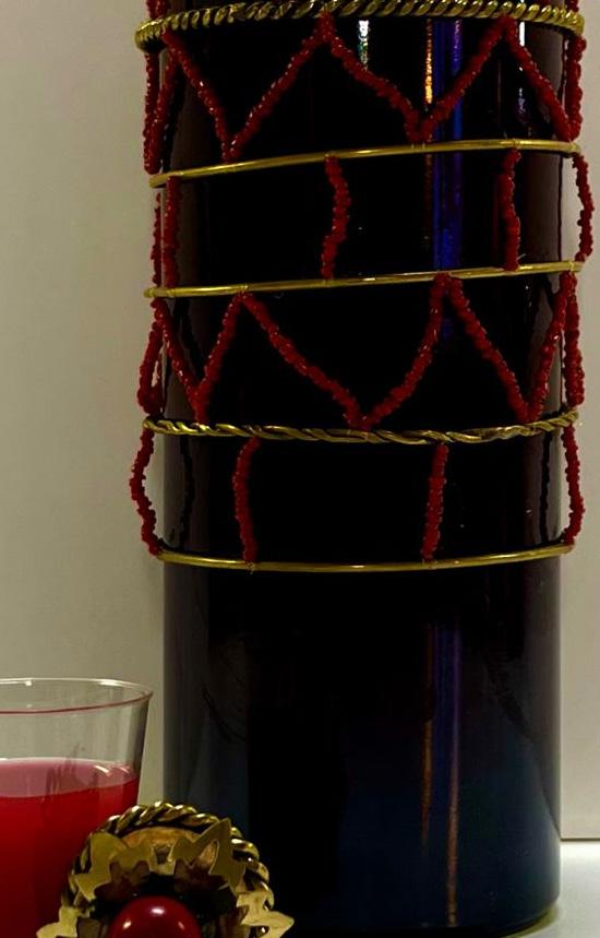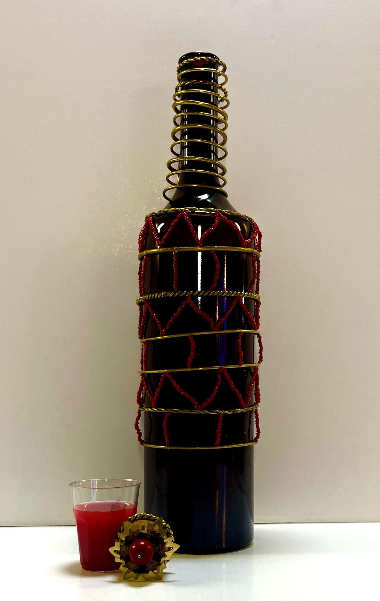 Sulla bottiglia è stato realizzato un lavoro di traforo e limatura.