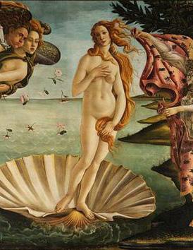 The composition more precisely depicts the landing on the island of Cyprus of the goddess of love and beauty, born from the foam of the sea and driven by the winds Zephyr and, perhaps, Aura. The goddess is standing above the shell of a shell, pure and perfect like a pearl.