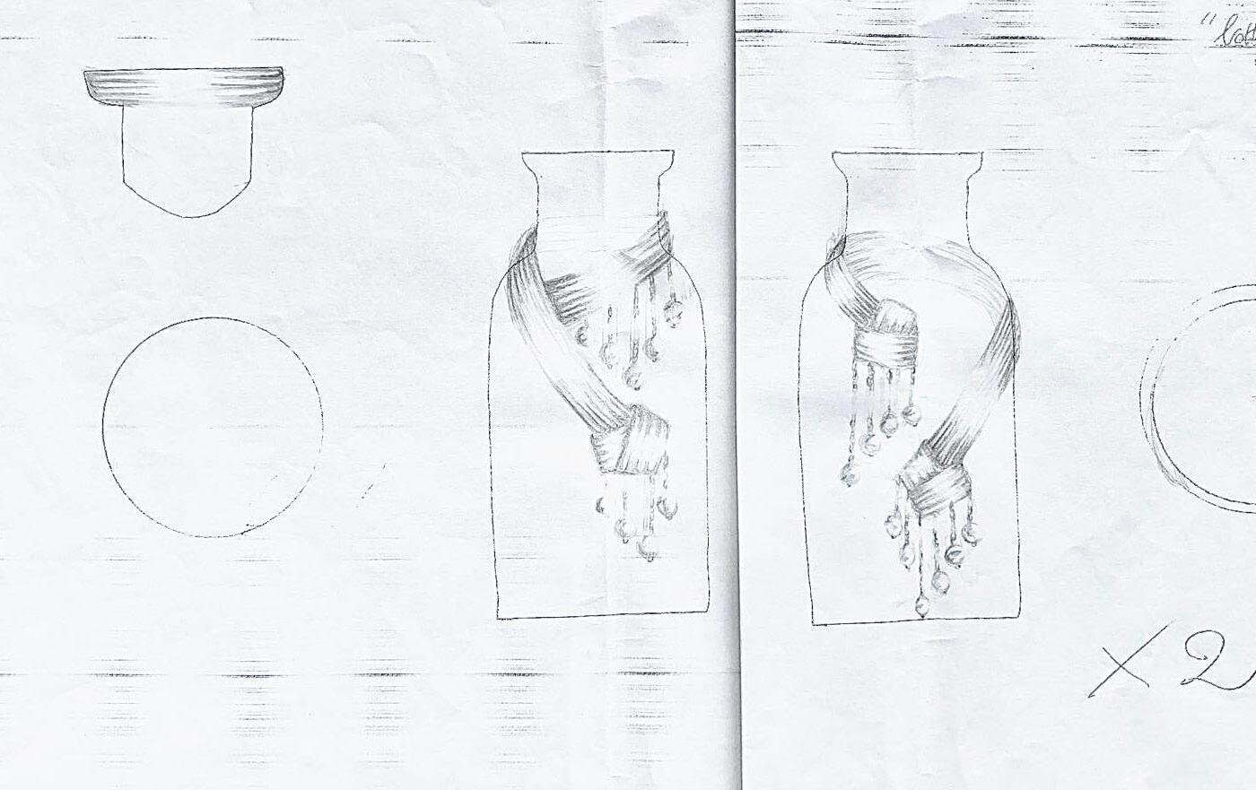 A tunneling and filing work was carried out on the bottle. It has been studied where to insert the semicircles, which take up the peculiarities of the bottle. The cap consist of a silver knob.