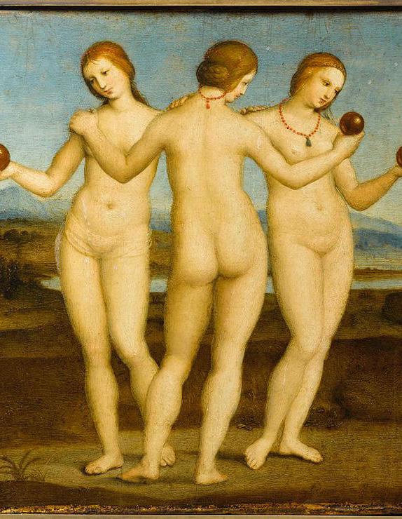 The fascination of the work lies in the spontaneily and simplicity of the composition. All Three Graces support the typical Renaissance there. According to mythology, when the Three Graces passed, flowers sprouted under their feet, a scene not represented inside the painting, but we decided to representit anyway for the realization of the bottle.
