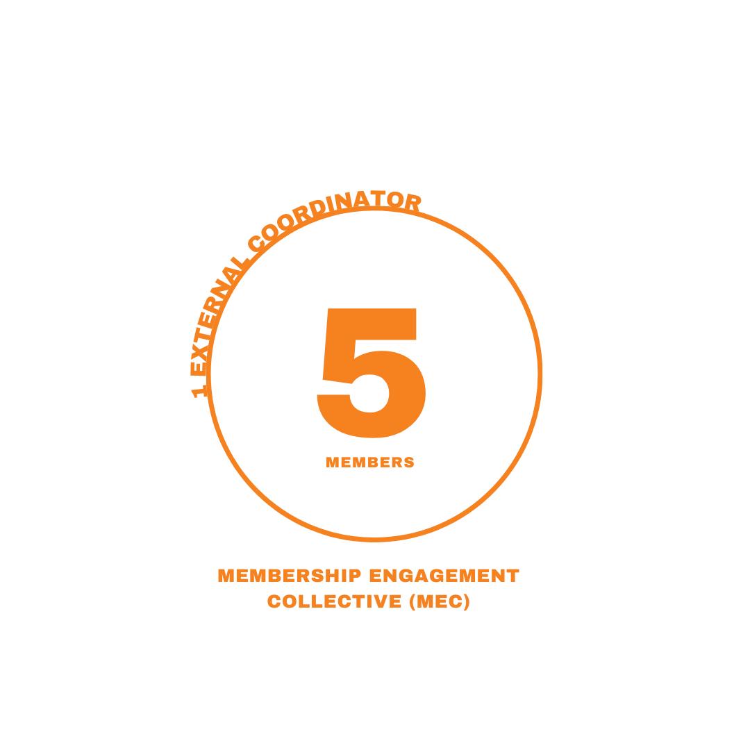 ● MEC roles include the Member Engagement Director, the Region Reps Coordinator, the Communications and Affinity Calls Coordinator, the Professional Development Coordinator and the Community Education Coordinator
