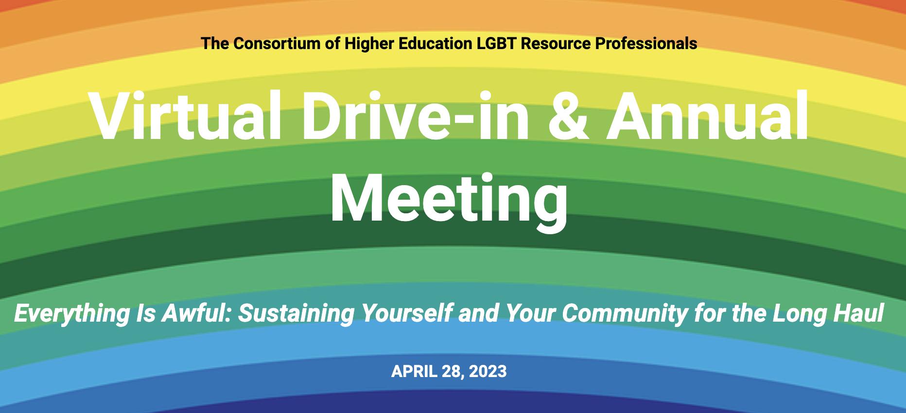 This year’s drive in was held on April 28th, themed: Everything Is Awful: Sustaining Yourself and Your Community for the Long Haul. The featured keynote was Dr. Ronni Sanlo speaking on “The Final Lavender Graduation.” Additional sessions included the following: