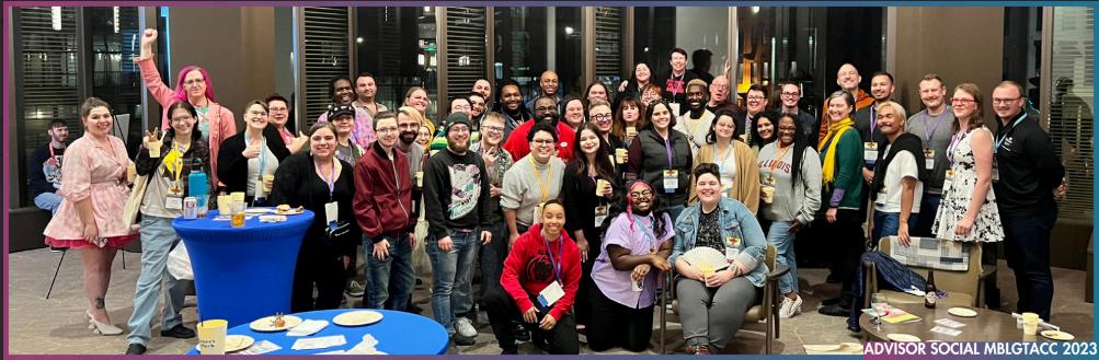 The Consortium hosted the Advisor Social at the 2023 Midwestern Bisexual Lesbian Gay Transgender Asexual College Conference (MBLGTACC) in Lexington, Kentucky. The Yellow Region representatives have historically hosted the social as an opportunity to connect with members within the region and as a recruiting opportunity for the Consortium. The 2023 Advisor Social was organized by Yellow Region Representatives Zach Parker, Chad Freeman, and Angie Freeman. Jeff