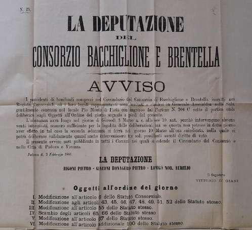 Sul filone del pluriennale lavoro già svolto dalla professoressa Antonietta Curci, è stata avviata una nuova ricerca storica sul passato del Consorzio, in particolare sull’ex Consorzio di bonifica “Bacchiglione Brentella”.