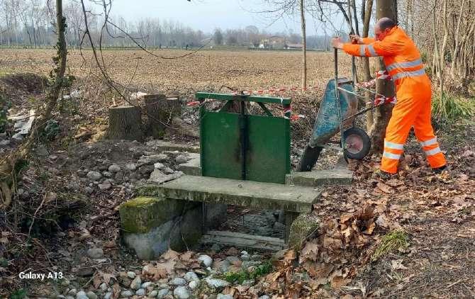 Gli interventi si svolgono con la pulizia degli alvei delle principali rogge irrigue e con eliminazione dei sedimenti mediante l’impiego di minipale meccaniche tipo “Bobcat”, oltre all’impiego della manovalanza dedicata a pulire i muri prevalentemente in calcestruzzo.