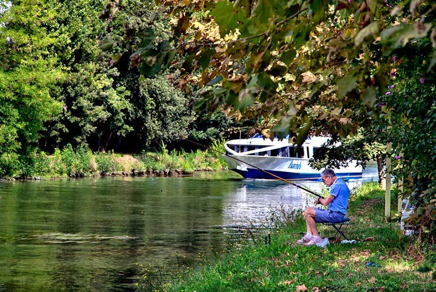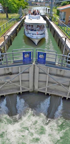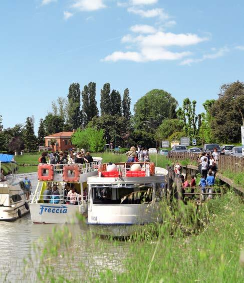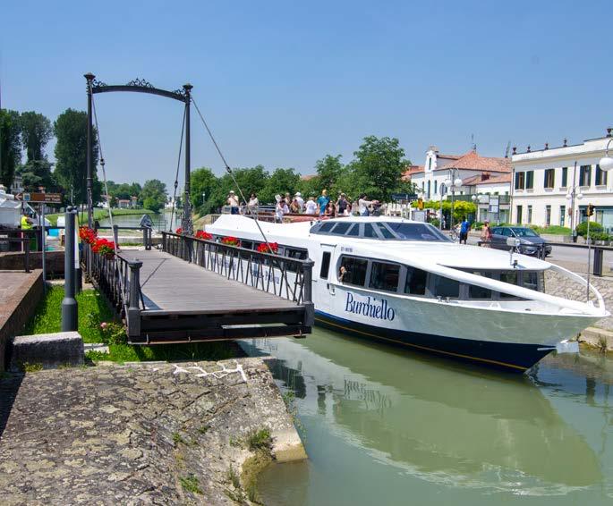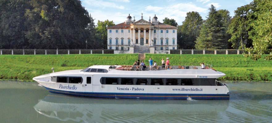 ces llorones, donde se daban cita damas, nobles y aventureros, estaba amenizado por comediantes y artistas. Hoy el Burchiello, que se ha convertido en un servicio turístico público, sigue recorriendo la Riviera del Brenta desde Padua a Venecia y viceversa. Fiel a las tradiciones ancestrales, surca las aguas del Brenta a un ritmo lento, mientras los guías a bordo ilustran la historia, la cultura y el arte de las Villas del Brenta. Las rutas incluyen la navegación entre las Villas de la Riviera del Brenta, desde Padua u Oriago a Venecia o viceversa, así como una visita guiada por el interior de algunas villas venecianas del siglo XVIII, ricas en frescos. Un evocador minicrucero, asegura Stefano, que cruza nueve puentes giratorios y cinco esclusas, verdaderos “ascensores de agua”, para descender, o volver a subir, los 10 metros de desnivel entre Padua y Venecia, donde termina en el mágico escenario de mármol de la cuenca de San Marco.