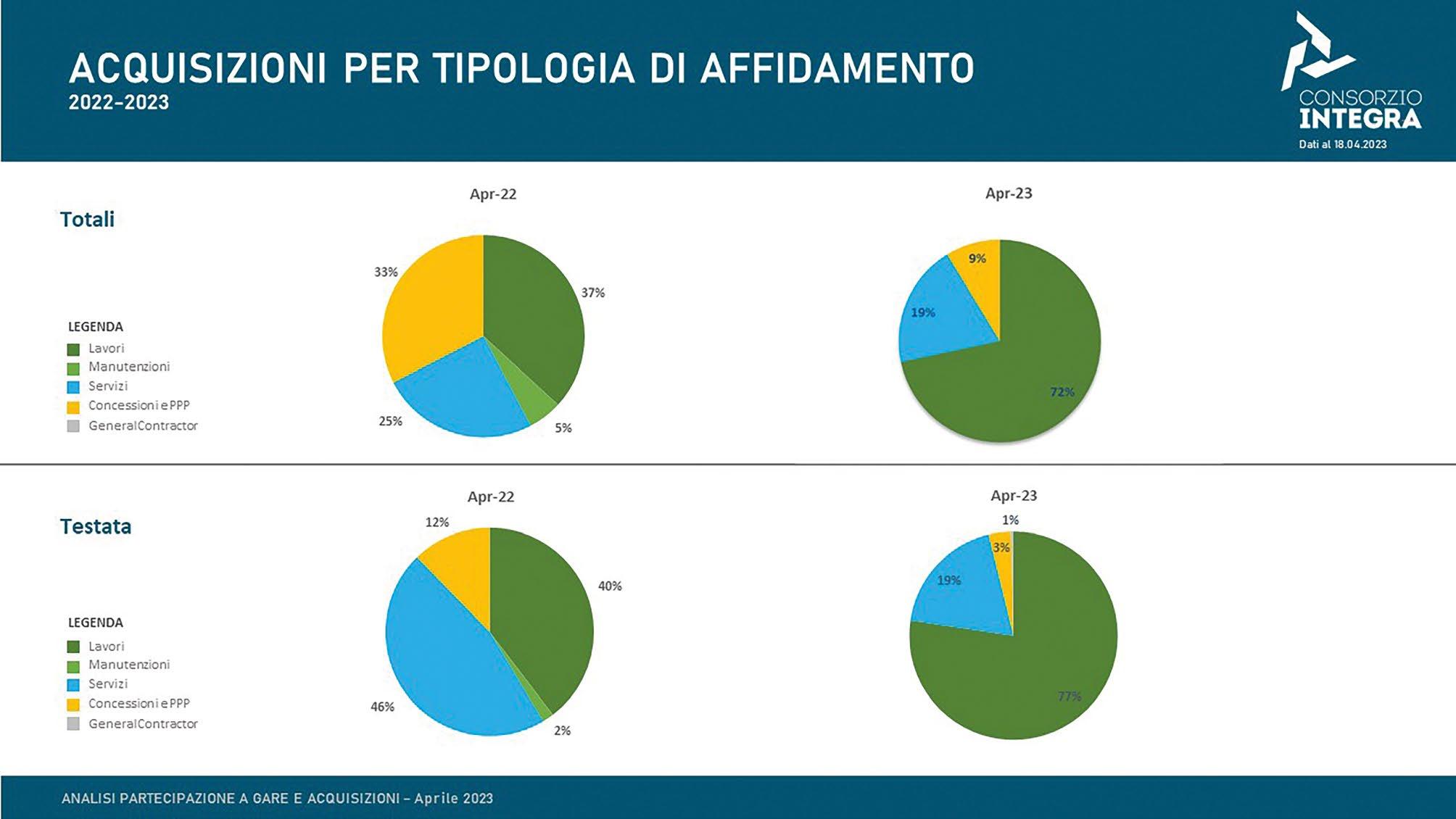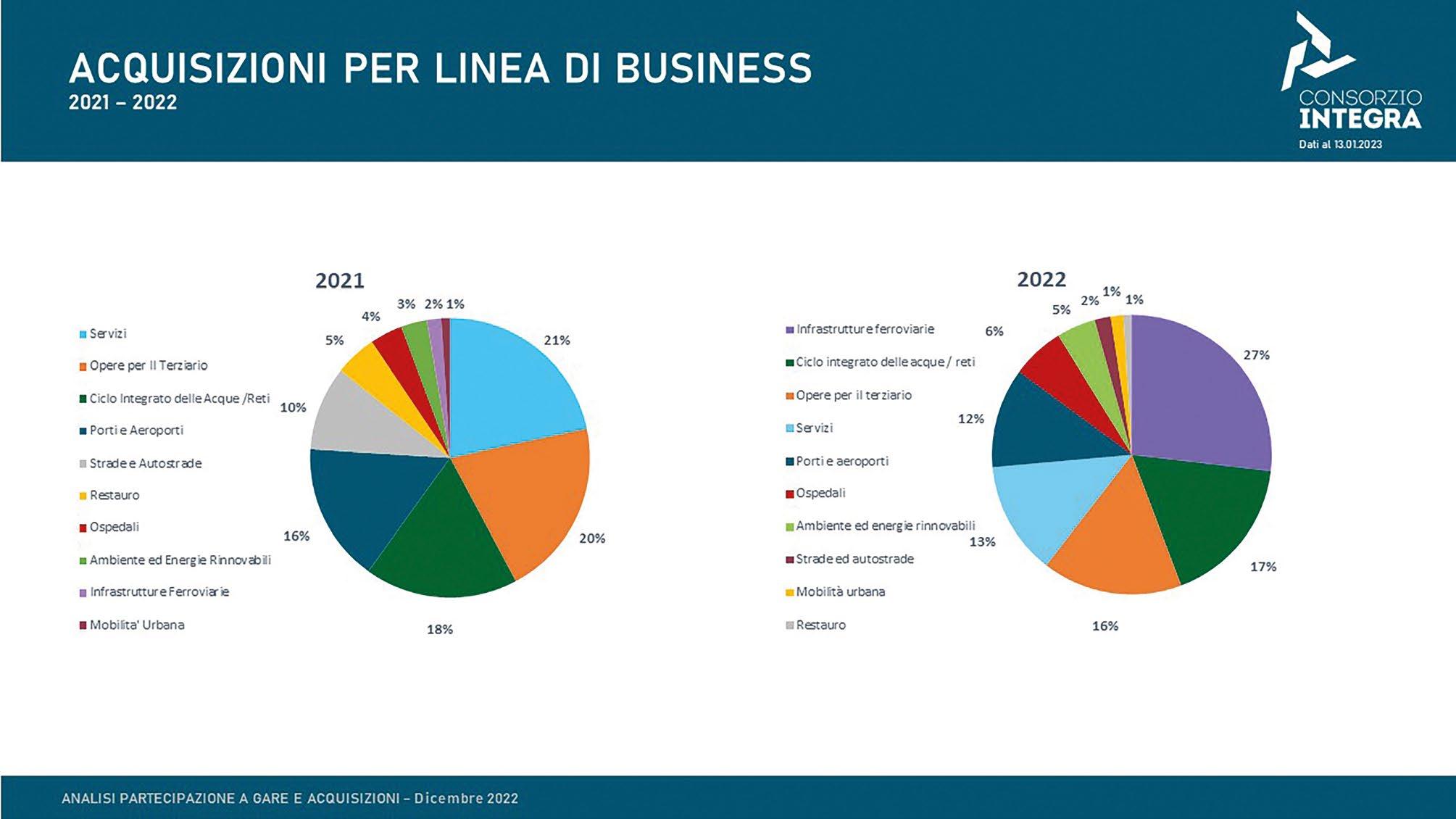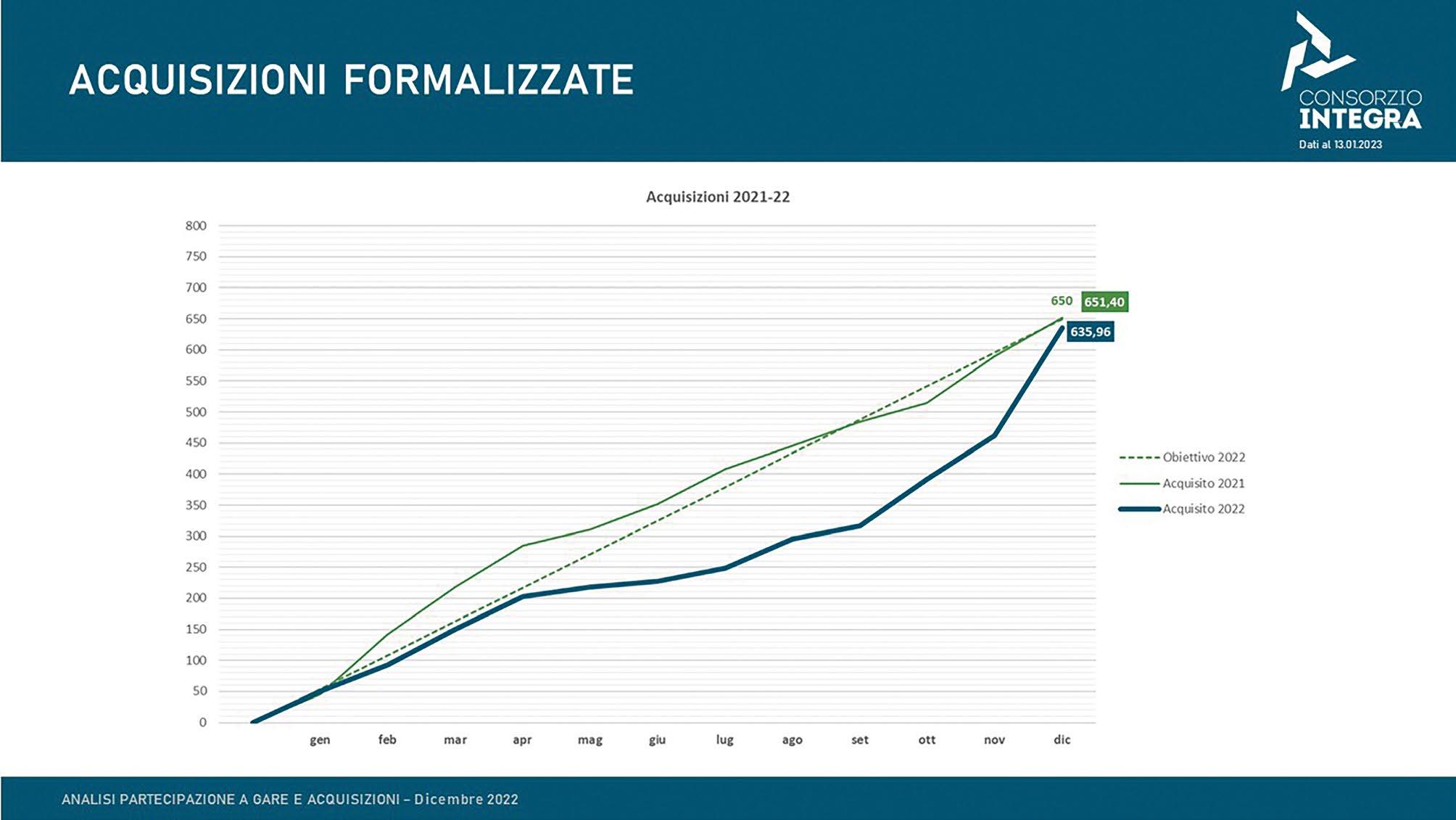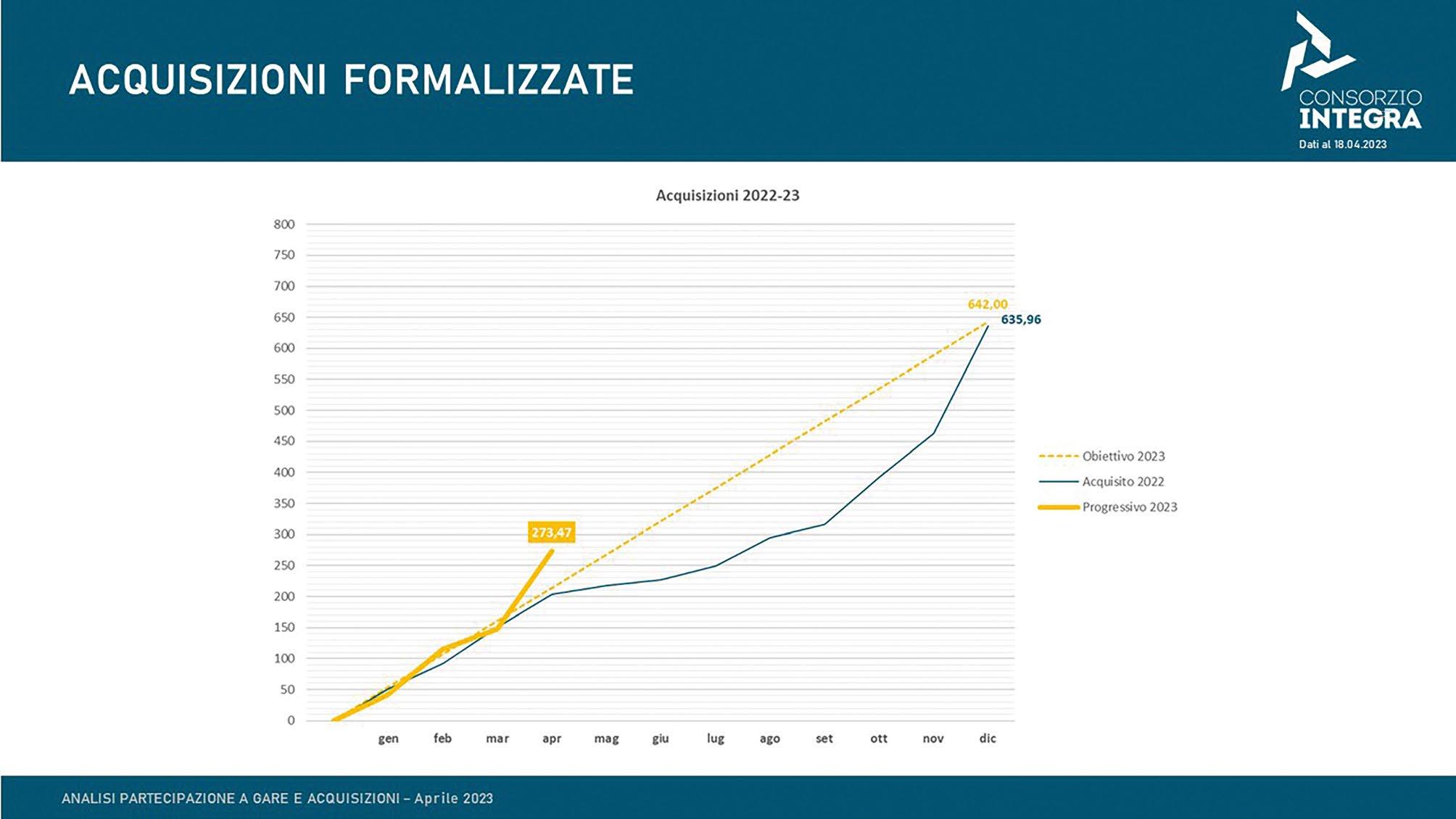 Per l’anno 2023 INTEGRA SI è data l’obbiettivo acquisitivo di 642 milioni di euro in linea con quanto è stato raggiunto per l’anno 2022.