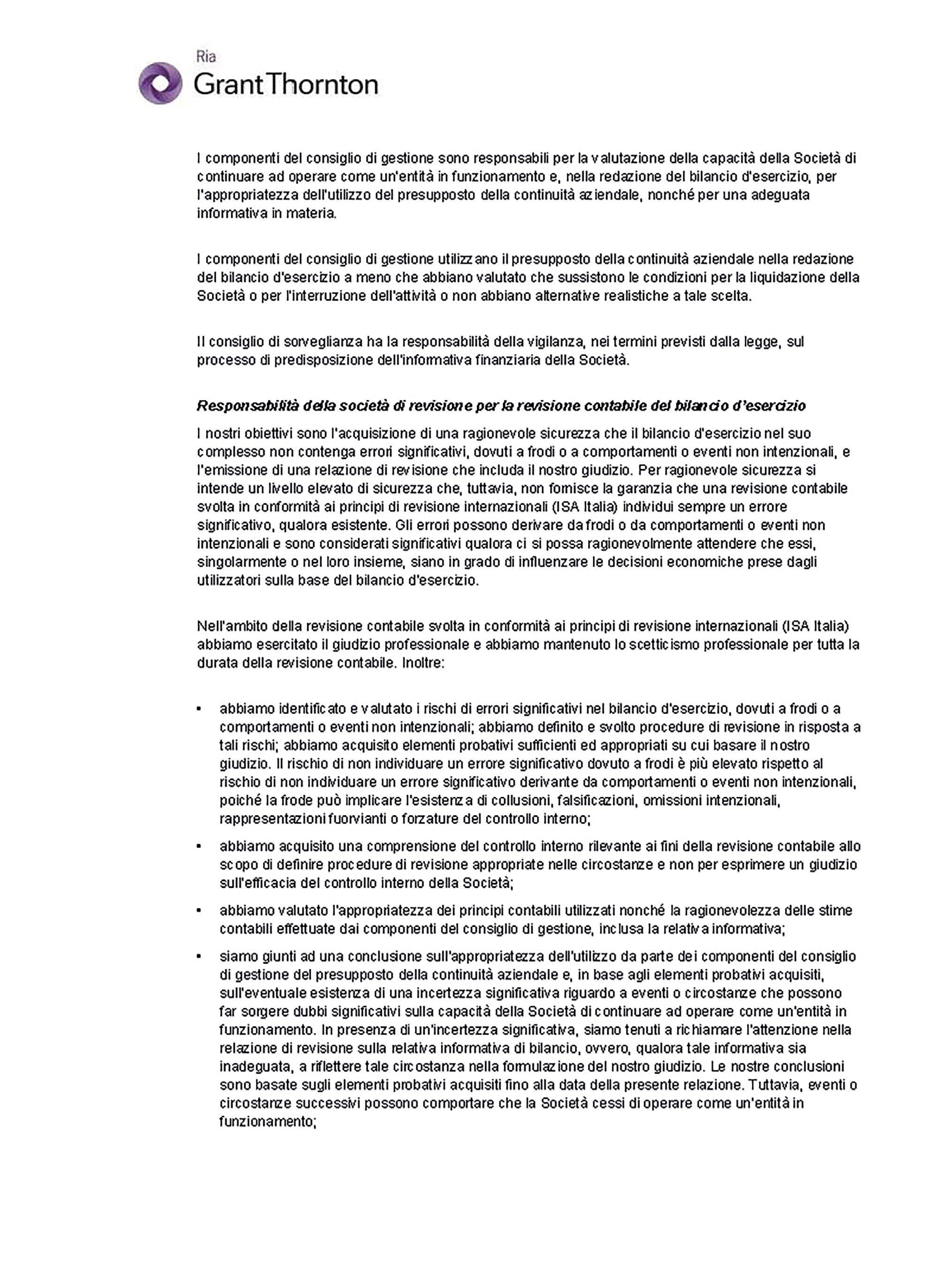 (*) Si segnala che la Società non è assoggettata all’attività di direzione e coordinamento da parte di un altro ente, di cui agli artt. 2497 sexies e septies c.c..