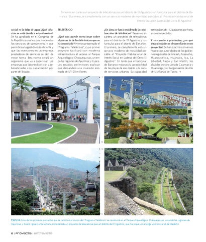 7,8,9,10: Uno de los primeros proyectos que se lanzó en el marco del ‘Programa Teleférico’ se construirá en el Parque Arqueológico Choquequirao, uniendo las regiones de Apurímac y Cusco. Igualmente se tiene considerado un proyecto de telecabinas para el distrito de El Agustino, que hará que Lima tenga uno similar al de Medellín.