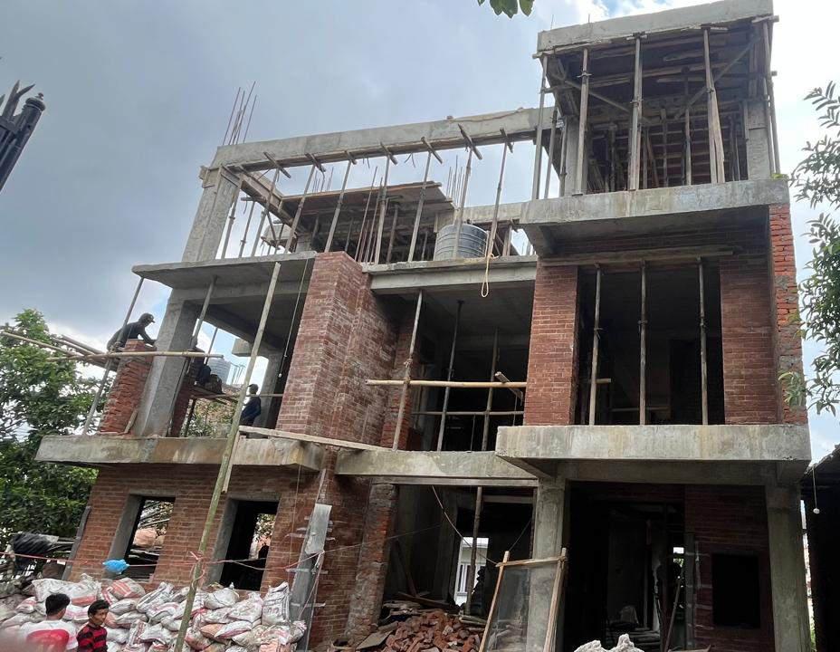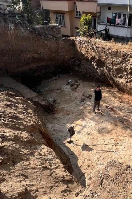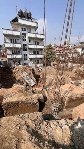 The project site is located in Baluwatar, Kathmandu, and features a variety of soil types, including clay, silt, and sand, which become evident as we move deeper into the ground. Given the heterogeneous nature of the soil and its classification as filled soil, a raft foundation was chosen over isolated or combined footings to ensure better stability and uniform load distribution. To improve soil conditions, water treatment was employed, and instead of traditional bricks, boulders were used for soil stabilization. This approach was aimed at enhancing the overall foundation strength and ensuring the long-term durability of the structures being built on this site.